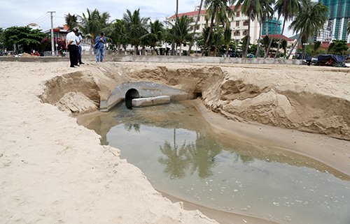 Nước thải từ cống tràn xuống biển Nha Trang