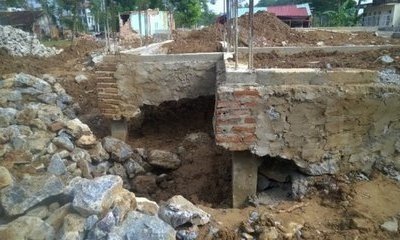 <p><strong>Một số điểm móng bị nứt toác, sụt lún, nghi ngờ có dấu hiệu thi công ẩu nên người dân đã báo lãnh đạo xã, huyện.</strong></p>