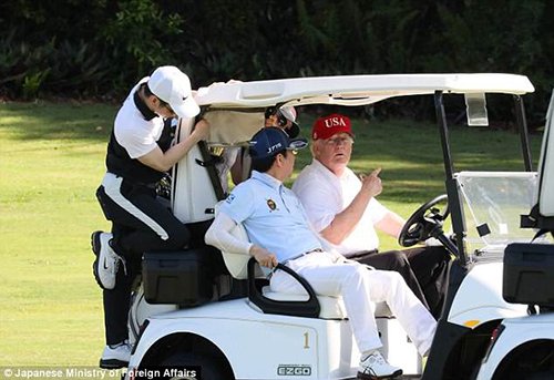 Trump lái xe đưa Abe đi đánh golf