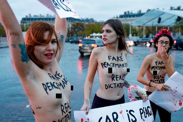 Các nhà hoạt động nữ quyền ngực trần đã bị bắt tại Paris sau khi biểu tình gây náo loạn một buổi tưởng niệm chiến tranh thế giới lần thứ nhất có sự tham gia của Tổng thống Mỹ Donald Trump và Thủ tướng Đức Angela Merkel.