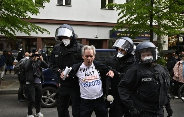 Cảnh sát Đức hôm 25/4 phải đương đầu với hàng chục người tụ tập biểu tình ở Berlin phản đối lệnh phong tỏa.