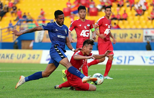 Tuyển thủ Việt Nam mở tỷ số trong chiến thắng 2-1 ở vòng 13 V-League chiều 13/6.