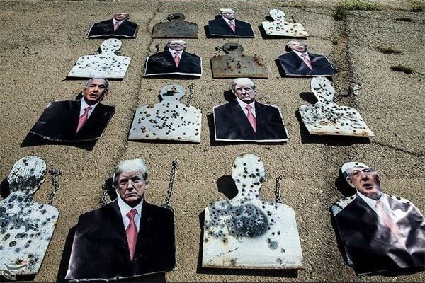 Hãng thông tấn Tasnim của Iran đã đăng tải các bức ảnh chụp binh lính nước này sử dụng bia tập bắn in hình Tổng thống Mỹ Donald Trump và Thủ tướng Israel Benjamin Netanyahu.