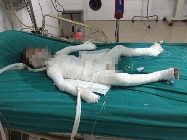Bị bố dượng hắt xăng lên người rồi đốt gây bỏng nặng, vết bỏng sâu nên bé Trần Gia K. đã qua đời sáng nay.