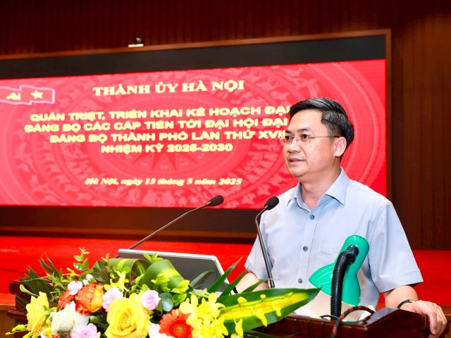 Chiều 13-5, Trưởng ban Tổ chức Thành ủy Hà Nội Hà Minh Hải đã truyền đạt nội dung Kế hoạch tổ chức đại hội đảng bộ các cấp, tiến tới Đại hội đại biểu Đảng bộ thành phố Hà Nội lần thứ XVIII, nhiệm kỳ 2025-2030.