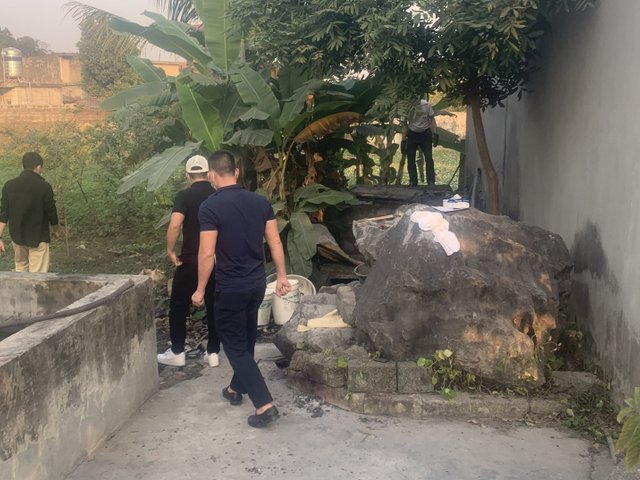 Khi thợ đào dưới lớp xi măng được khoảng 30cm ở khu vực công trình phụ thì người thợ hốt hoảng vì phát hiện thấy những dấu vết lạ. Đầu tiên là một số xương ngón tay, đào rộng ra chừng vài chục cm nữa thì cả một bộ hài cốt còn nguyên vẹn lộ ra.