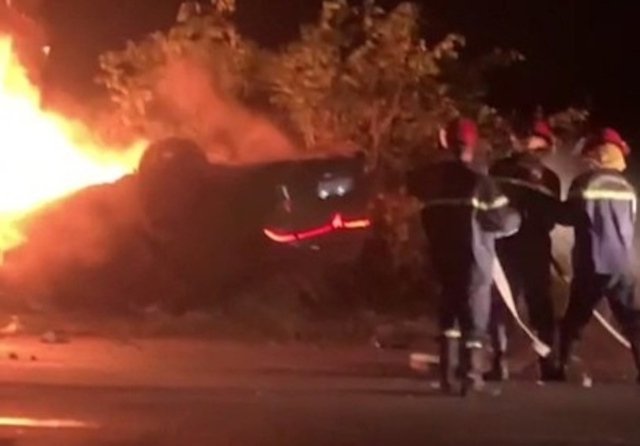 Ô tô chở 3 người chạy trên quốc lộ 1A đoạn qua TP Huế thì tông vào cây xanh, trụ đèn rồi lật ngửa trước khi bốc cháy, rất may toàn bộ người trong xe được cứu sống.