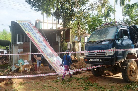 Trong lúc đào đường, xe máy xúc đào trúng quả bom, phát nổ khiến 1 người bị thương, nhiều nhà dân xung quanh bị hư hỏng.