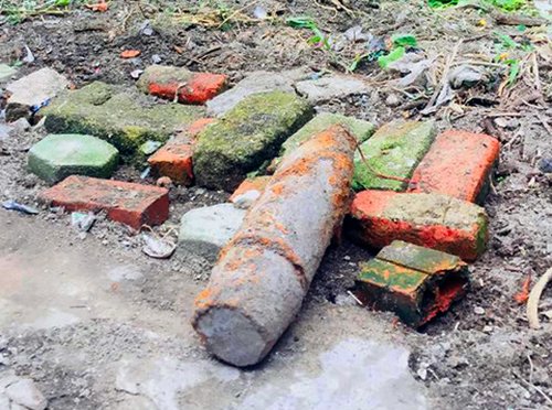 Trong lúc cuốc đất làm vườn, chị Thơm (Hà Tĩnh) đào trúng quả bom dài nửa mét, nặng hàng chục kilogram.