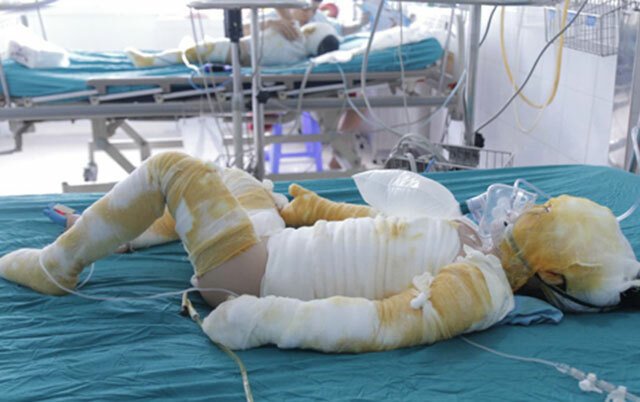 Bé Anh Thư (3 tuổi), bỏng 52% cơ thể do đứng gần mâm cồn bốc cháy khi học kỹ năng sống ở Hà Nam, tỉnh lại vào trưa nay (12/8), sau 3 ngày hôn mê.