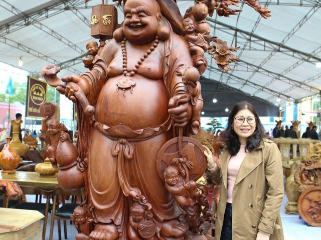 Mục sở thị bức tượng Phật Di Lặc Cửu tặc nặng 2 tấn làm bằng gỗ hương, giá 1 tỷ đồng