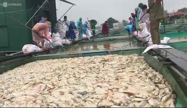 Lũ đầu nguồn mang theo bùn đổ về hạ lưu sông Hồng khiến 80 tấn cá lồng bè bị chết trắng mặt sông, gây thiệt hại nhiều tỷ đồng