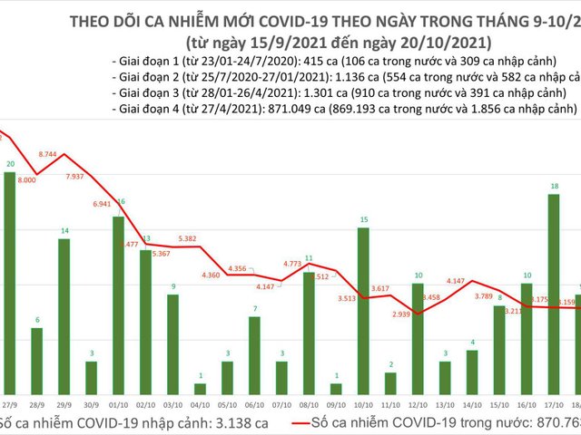 Tối 20/10, Bộ Y tế thông báo ghi nhận 3.646 ca mắc COVID-19 tại TP.HCM và 49 tỉnh, thành phố khác.