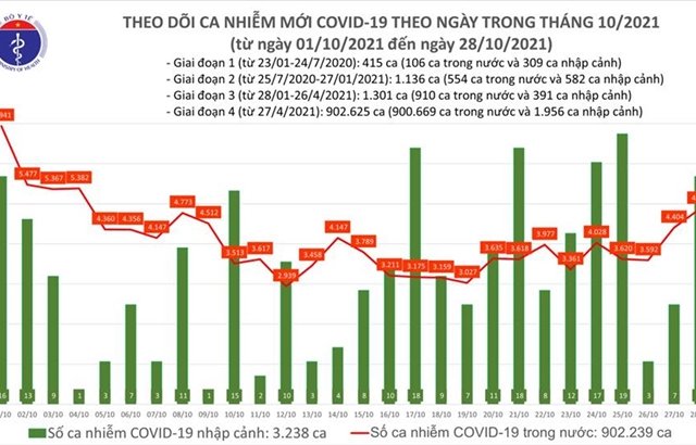 Ngày 28/10, Bộ Y tế công bố thêm 4.892 ca COVID-19, trong đó 4.876 ca ghi nhận trong nước.