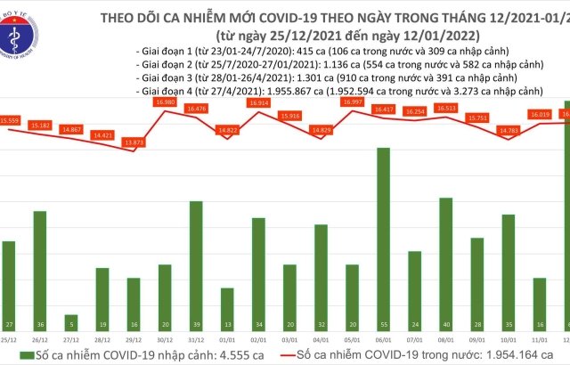 Bộ Y tế tối 12/1 ghi nhận thêm 16.135 ca COVID-19 tại 60 tỉnh, thành phố, trong đó có 10.889 ca cộng đồng.