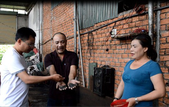 <p><strong>Chủ cơ sở ở Đăk Nông dùng bột đen của pin con ó hòa tan trong nước rồi nhuộm với cà phê phế thải, đóng gói bán ra thị trường.</strong></p>