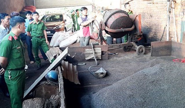 Sáng 17.4, Phòng Cảnh sát Môi trường (PC49), Công an tỉnh Đắk Nông cho biết, đơn vị vừa bắt quả tang một cơ sở chế biến càphê trộn với bột màu đen trong lõi pin.