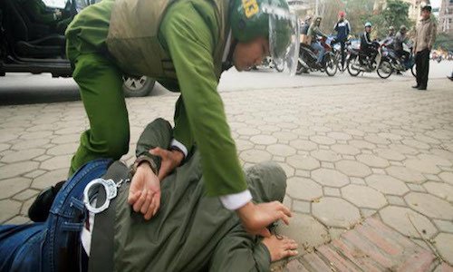 Cầm dao đuổi chém công an nhưng bị tước hung khí, Thế Anh tiếp tục đấm vào mặt.
