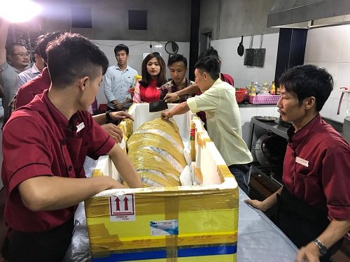 Dùng máy bay chuyển cá tra “khủng” từ Campuchia về Việt Nam
