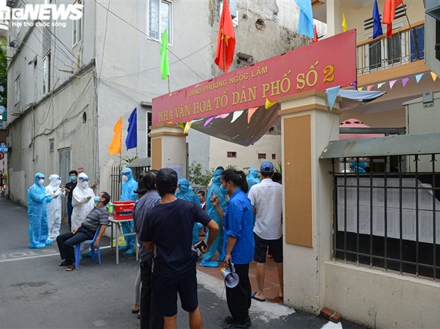 Ảnh: Cán bộ y tế Bắc Giang chi viện Hà Nội xét nghiệm COVID-19 diện rộng