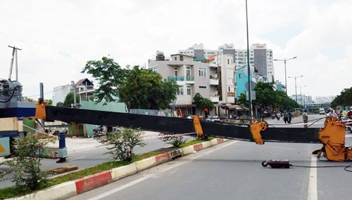 Cần cẩu sập trên đại lộ Sài Gòn, nhiều người hoảng hốt