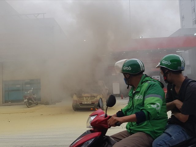Khoảng 7h10 ngày 27.7, một xe ô tô con vừa đổ xăng thì bốc cháy dữ dội khiến mọi người hốt hoảng.