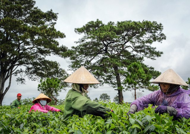 Cuối tháng 8, hàng trăm nông dân tất bật làm việc trên những cánh đồng chè lâu năm ở xã Nghĩa Hưng, huyện Chư Păh, tỉnh Gia Lai.