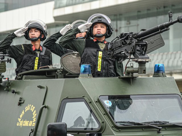 Công an Hà Nội bố trí các tổ tuần tra kiểm soát, kết hợp với lực lượng hoá trang, mật phục xử lý nghiêm các trường hợp đua xe, gây rối sau 2 trận bóng đá có U23 Việt Nam thi đấu. Cảnh sát cơ động được trang bị súng AK.