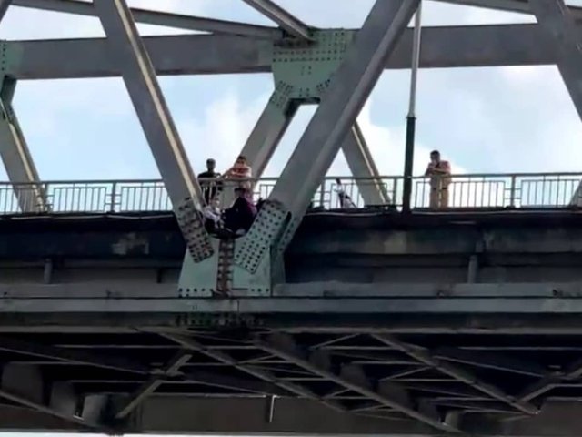 Cảnh sát đường thủy chạy bộ lên cầu cứu phụ nữ mang bầu định tự tử