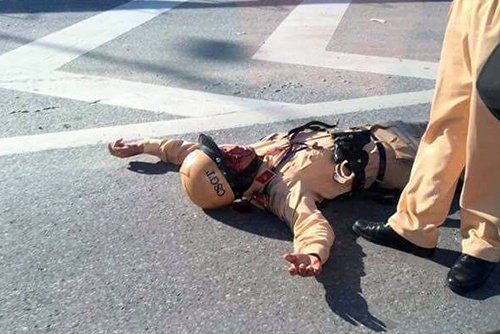 Cảnh sát giao thông bị xe vi phạm tông gãy tay ở Hà Nội