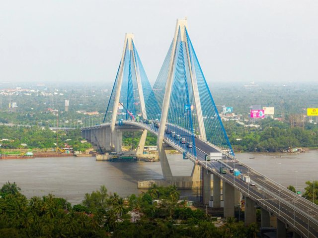 Cầu Mỹ Thuận 2 nối liền 2 tỉnh Vĩnh Long và Tiền Giang với kinh phí 5.000 tỷ đồng là cầu dây văng đầu tiên mà Việt Nam làm chủ công nghệ xây dựng.