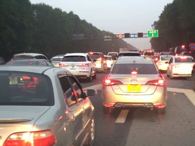 Chiều 2/5, người dân ùn ùn quay trở lại Hà Nội, cùng với đó lại xảy tai nạn giao thông liên hoàn trên cao tốc Pháp Vân khiến giao thông hướng về thành phố ùn tắc.
