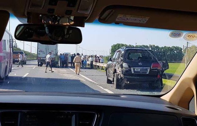 Khi bị xe tải tông từ phía sau khiến tài xế tử vong, chủ nhân chiếc xe Lexus đang ngồi trong xe và bị choáng nhẹ.