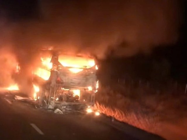 Ngọn lửa bốc lên từ phía sau chiếc xe khách giường nằm trên cao tốc Vĩnh Hảo – Phan Thiết rồi nhanh chóng bùng phát dữ dội, bao trùm toàn bộ thân xe.