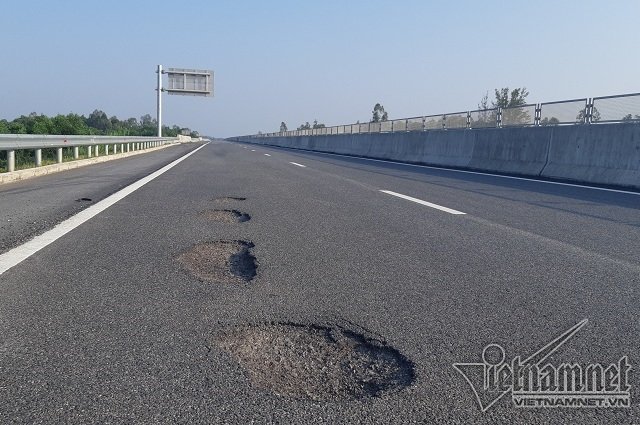Cao tốc đầu tiên ở miền Trung xuất hiện nhiều ổ gà