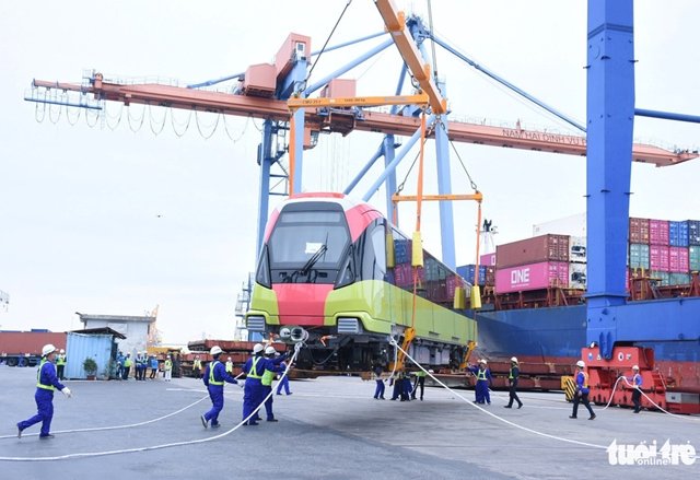 Đoàn tàu đầu tiên trong số 10 đoàn tàu của tuyến metro số 3 của Hà Nôi, khởi hành từ cảng Dunkerque vào đầu tháng 9, đã về tới Hải Phòng ngày 18/10.