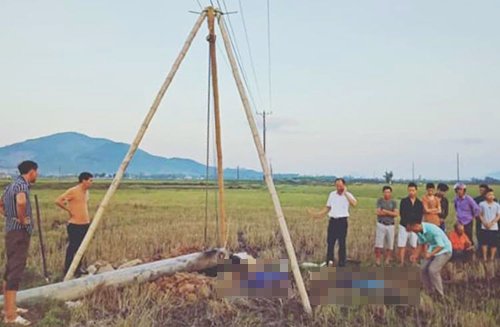 Trong lúc kéo cáp viễn thông ở cánh đồng Hà Tĩnh, bốn công nhân để cột chạm vào dây điện trung thế.