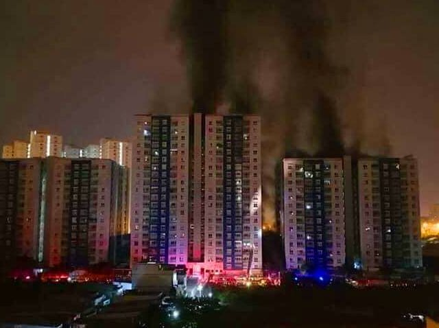 Hơn 200 lính cứu hỏa và nhiều xe thang vận hành hết công suất để giải cứu hàng trăm người mắc kẹt trong đám cháy tòa nhà ở quận 8, TP HCM.