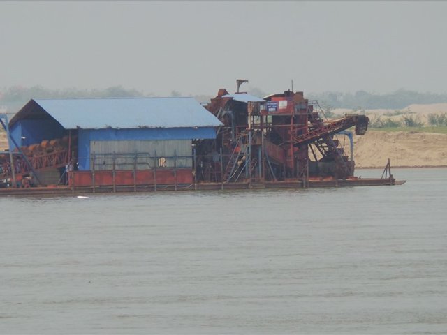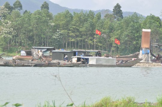 Chỉ chưa đầy 2 km dọc sông đã có tới 6 bãi cát trái phép, cùng rất nhiều tàu thuyền đua nhau đục khoét tài nguyên dưới dòng sông Mã.