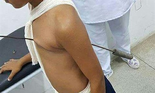 Xiên nướng thịt rung cùng nhịp tim sau khi đâm xuyên ngực trái của cậu bé Marivaldo José da Silva ở Brazil.