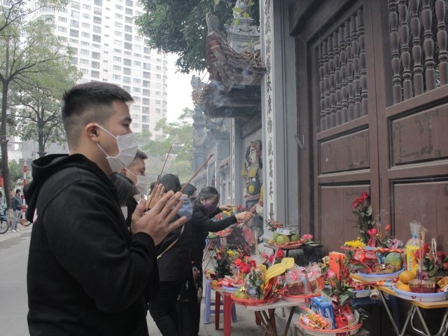 Nhiều người trẻ đứng ngoài bái vọng chùa Hà cầu duyên