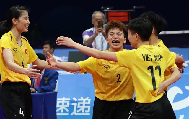 Đội tuyển Việt Nam giành huy chương vàng môn cầu mây nội dung đội 4 nữ ASIAD 19.