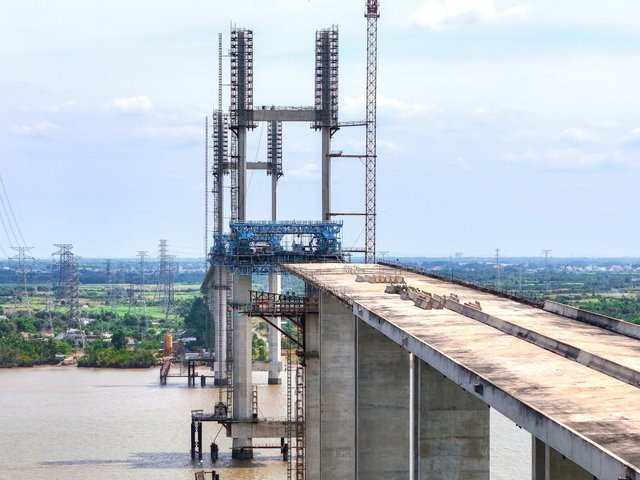 Cầu Phước Khánh - “nút thắt” cuối trên cao tốc Bến Lức - Long Thành nối TP.HCM với Nhơn Trạch (Đồng Nai) đã đạt hơn 95% khối lượng, dự kiến hợp long tháng 5/2026.