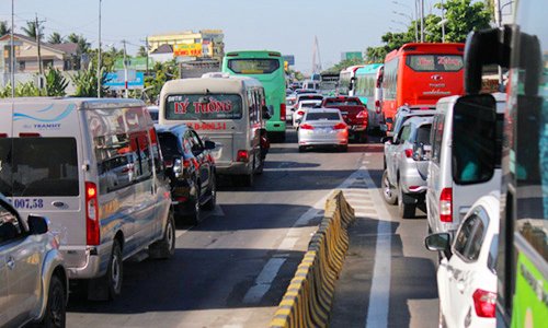 Cầu Rạch Miễu kẹt xe nhiều giờ khi người dân ùn ùn về Sài Gòn