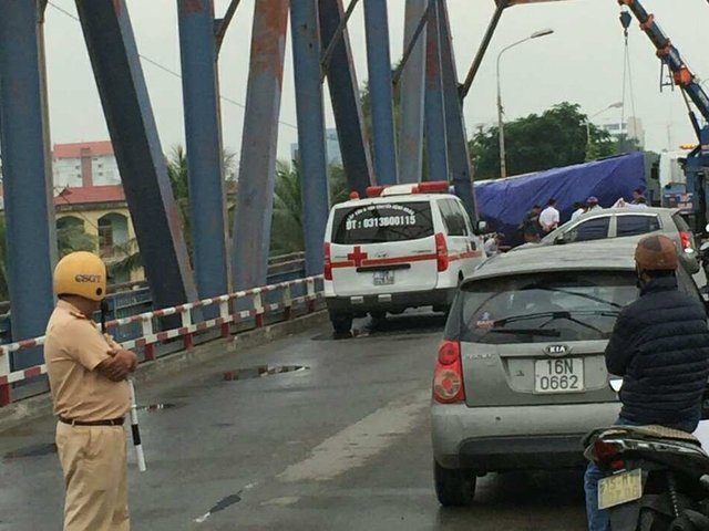 Xe tải bị lật trên cầu Rào (Hải Phòng) đè vào 2 mẹ con đi xe máy khiến người mẹ tử vong, con bị thương. Giao thông qua cầu tê liệt.