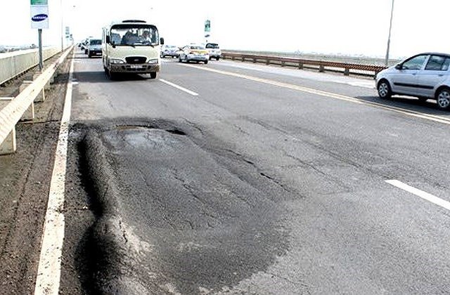 Đã 10 năm nay, mặt cầu Thăng Long xảy ra tình trạng lún, nứt, ổ gà chi chít. Bộ GTVT cũng đã nhiều lần chi tiền để sửa chữa, vá víu nhưng cũng chỉ là tạm bợ, không thể xử lý dứt điểm.