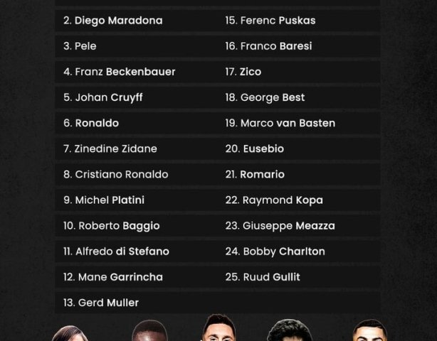 Bảng xếp hạng 25 cầu thủ vĩ đại nhất lịch sử: Ronaldo chỉ xếp thứ 8