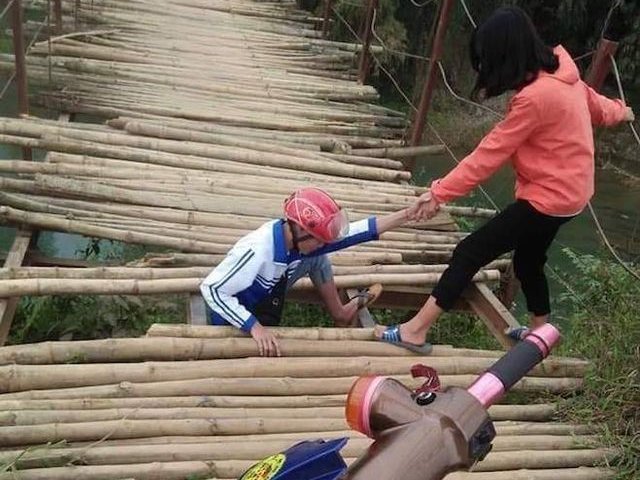 Cây cầu treo ở xã Chí Đạo (huyện Lạc Sơn, tỉnh Hòa Bình) luôn rình rập đe doạ tính mạng các cháu học sinh và người dân mỗi khi qua lại.