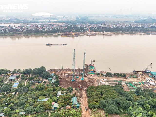 Hiện trạng cầu Tứ Liên vượt sông Hồng sau 7 tháng thi công