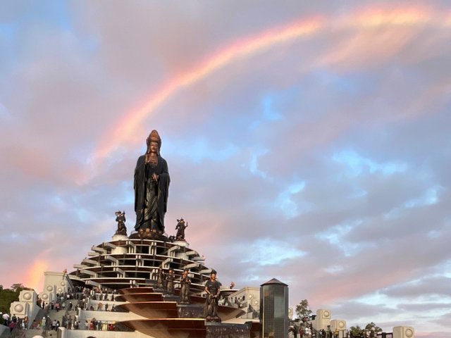 Sáng 26/1 (tức ngày Mùng 5 Tết), nhiều người dân và du khách thập phương về Hội xuân núi Bà Đen ở Tây Ninh đã ghi lại hình ảnh núi Bà Đen được bao trùm bởi cầu vồng đơn sắc độc lạ.